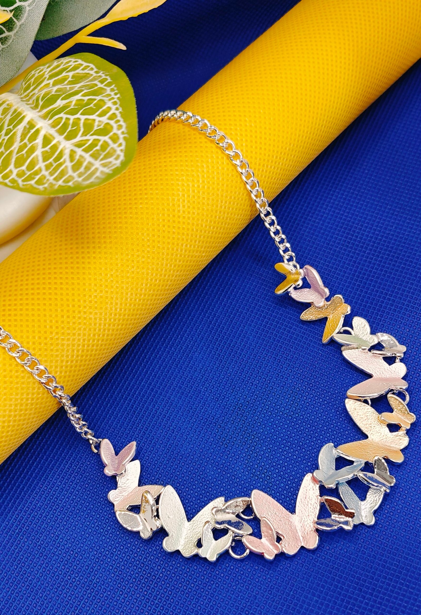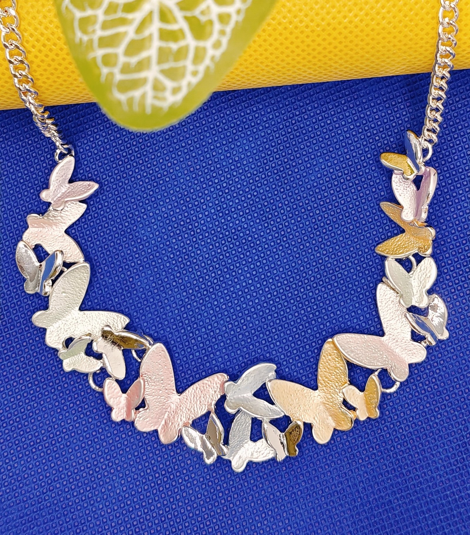 Unleash your inner free spirit with this stunning butterfly necklace! Designed to add a touch of delicate beauty and whimsical charm, this piece features numerous butterflies in harmonious metallic shades.