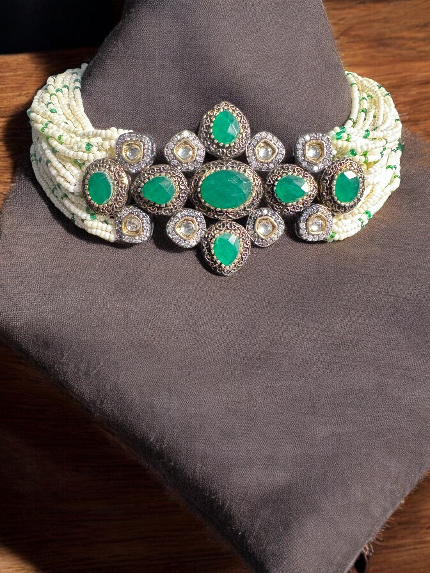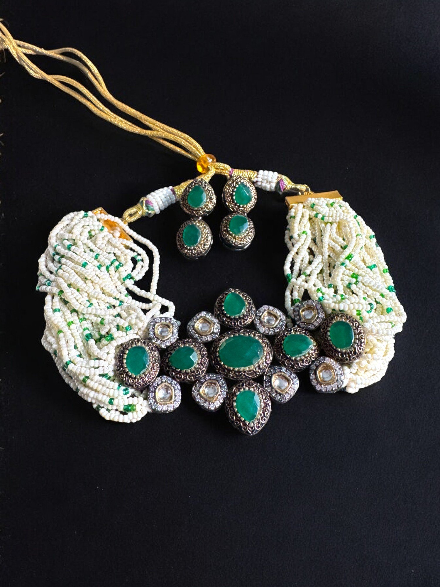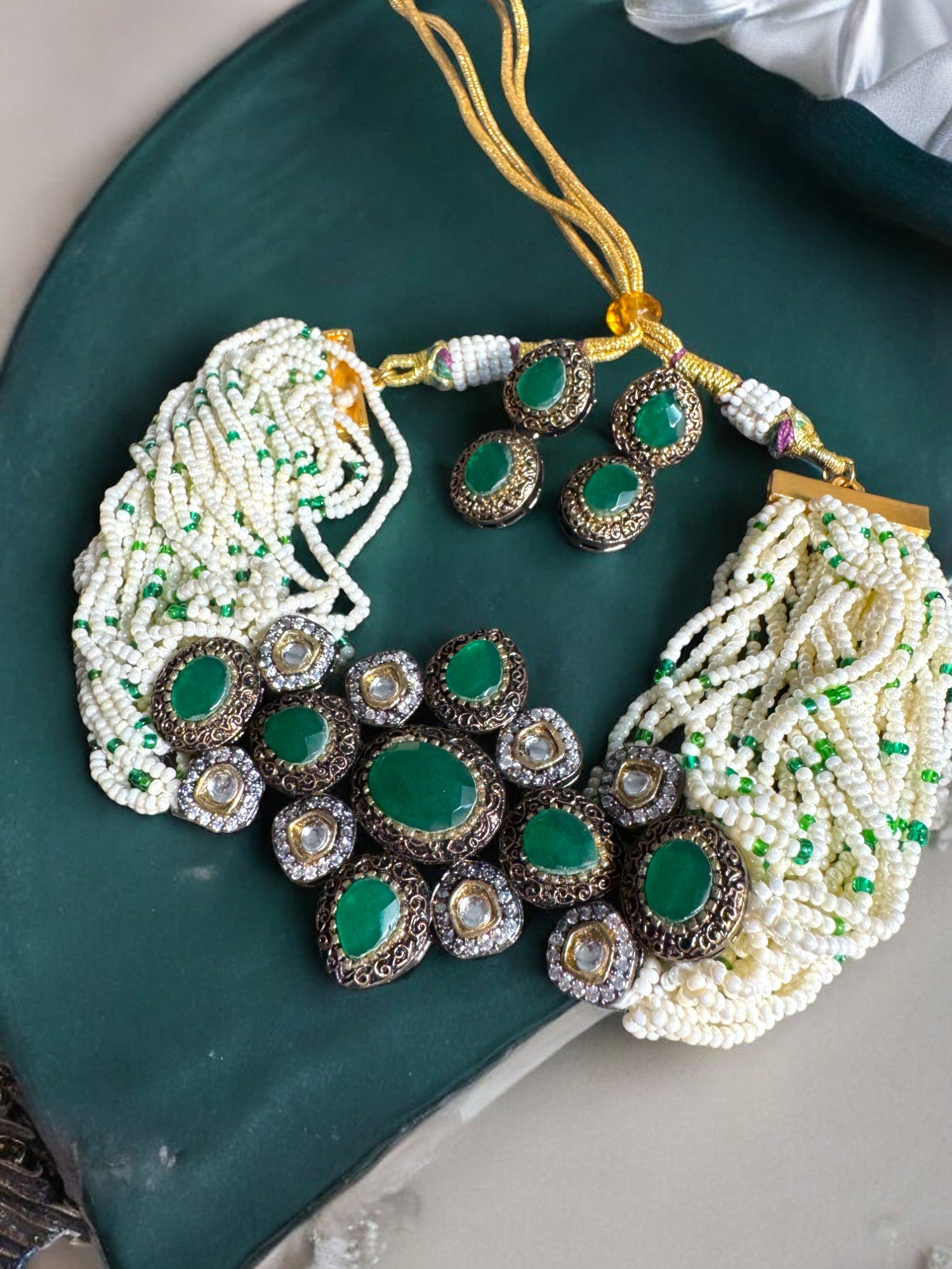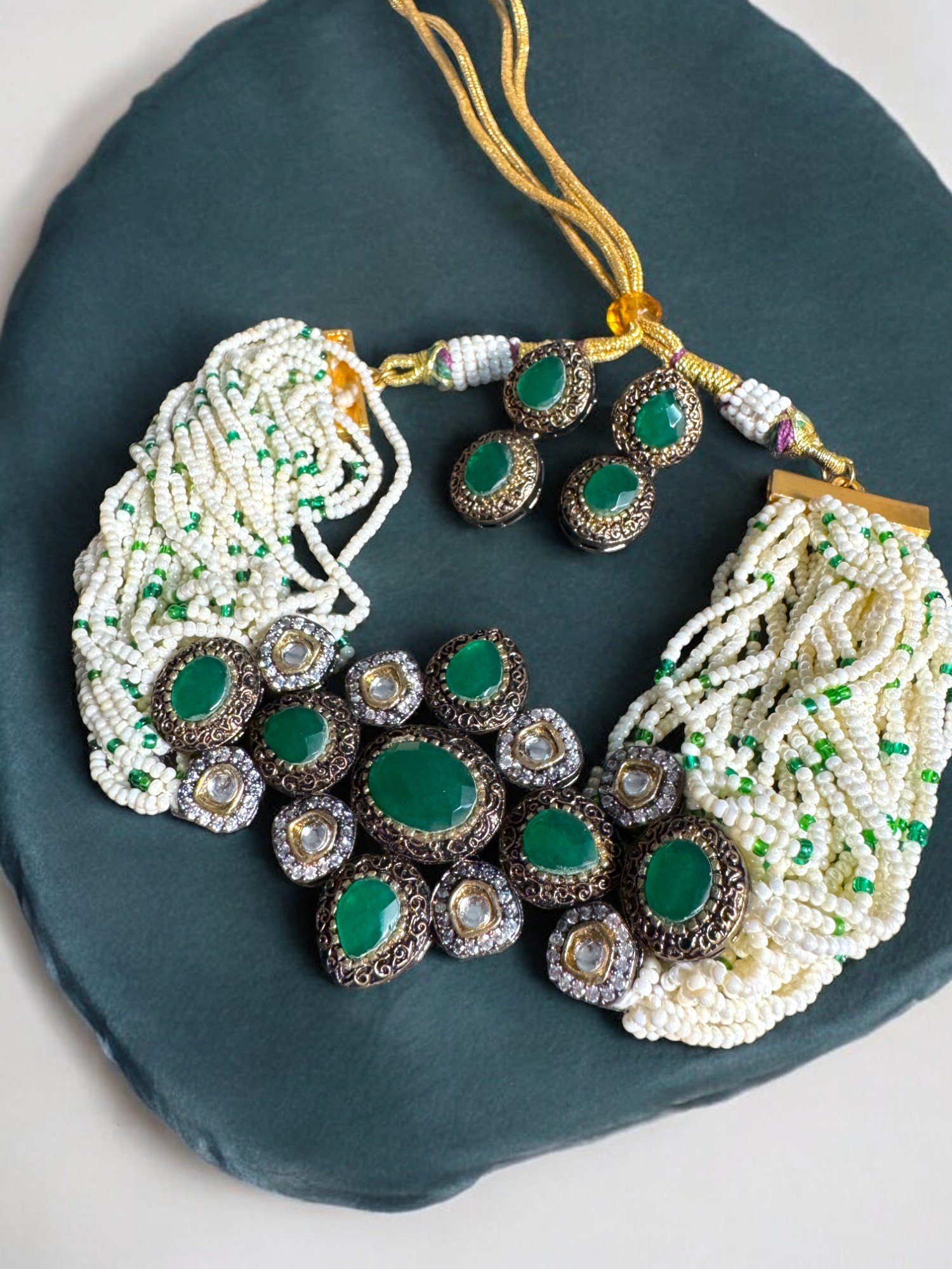 Antique Green Choker Set with Earrings