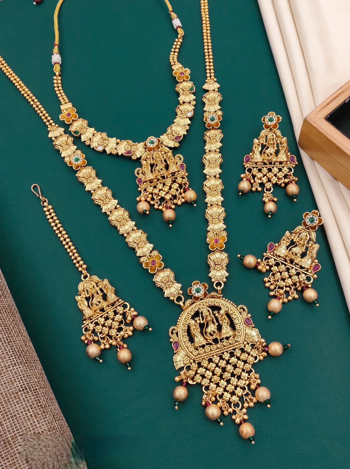 • Includes: Long necklace, short necklace, earrings, and maang tikka