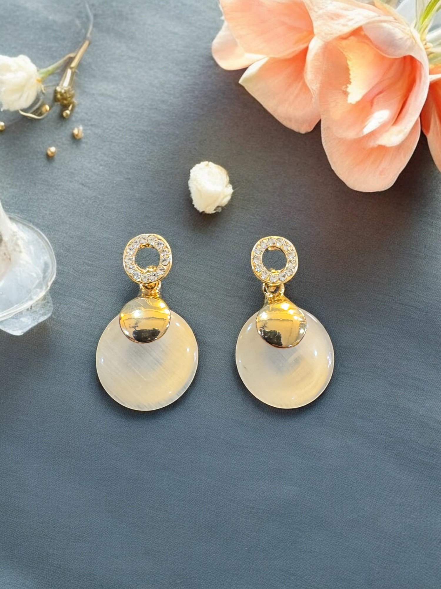 Sophisticated Earrings with a Modern Twist – Crafted with shimmering white stones and featuring a unique double-circle design. These earrings are perfect for adding a touch of elegance to any outfit