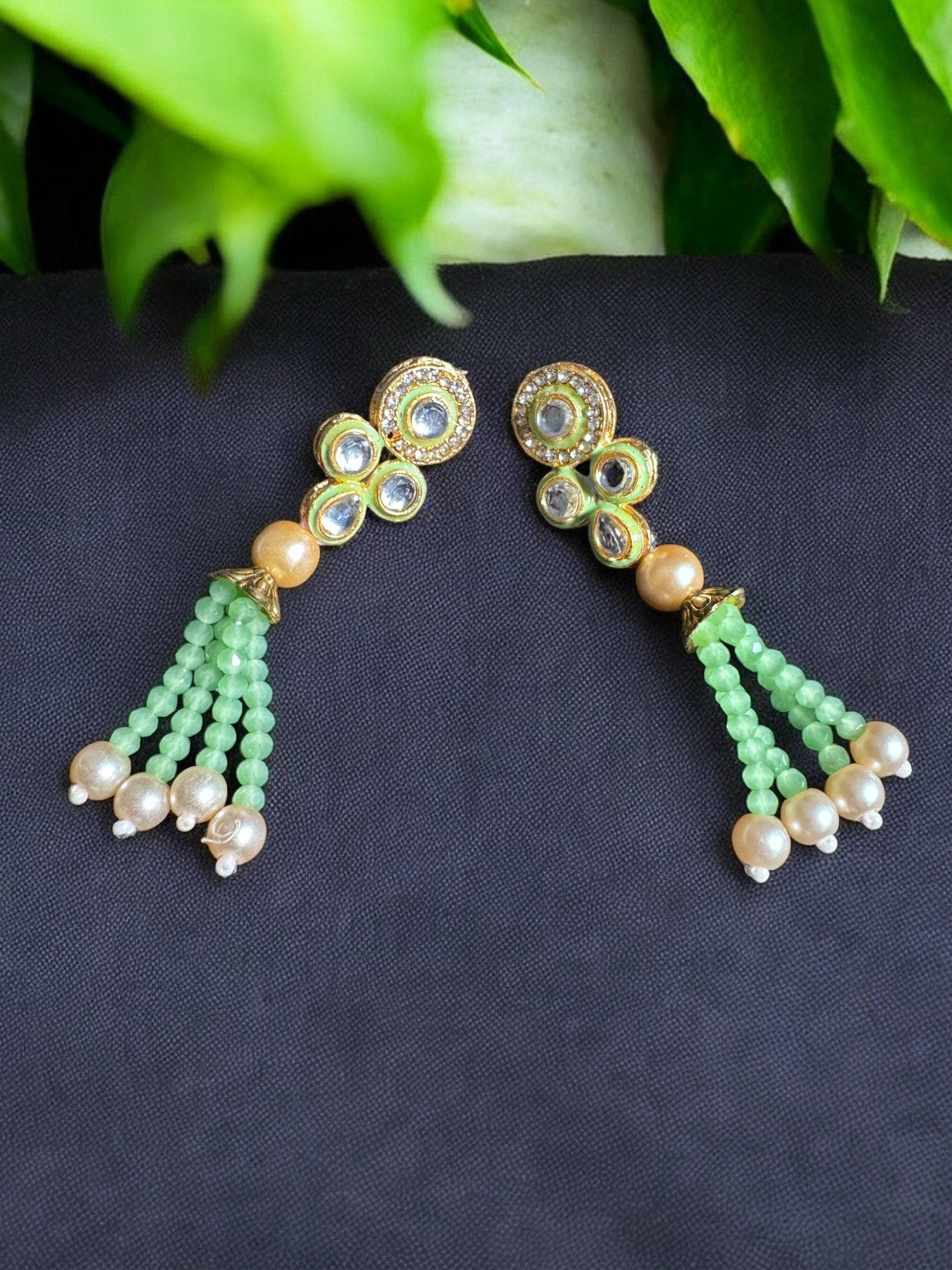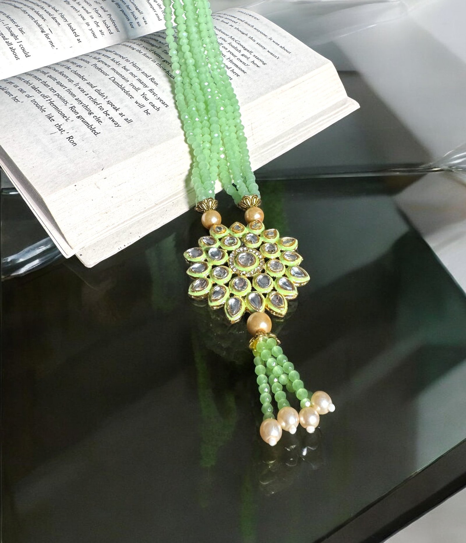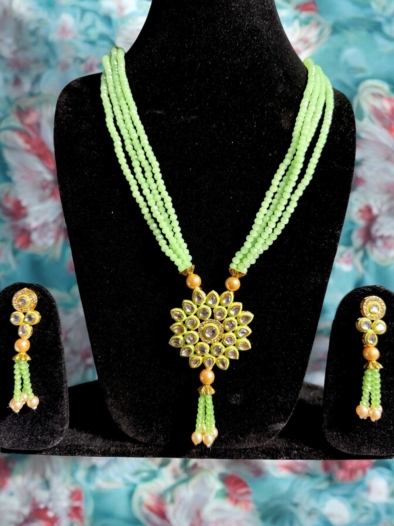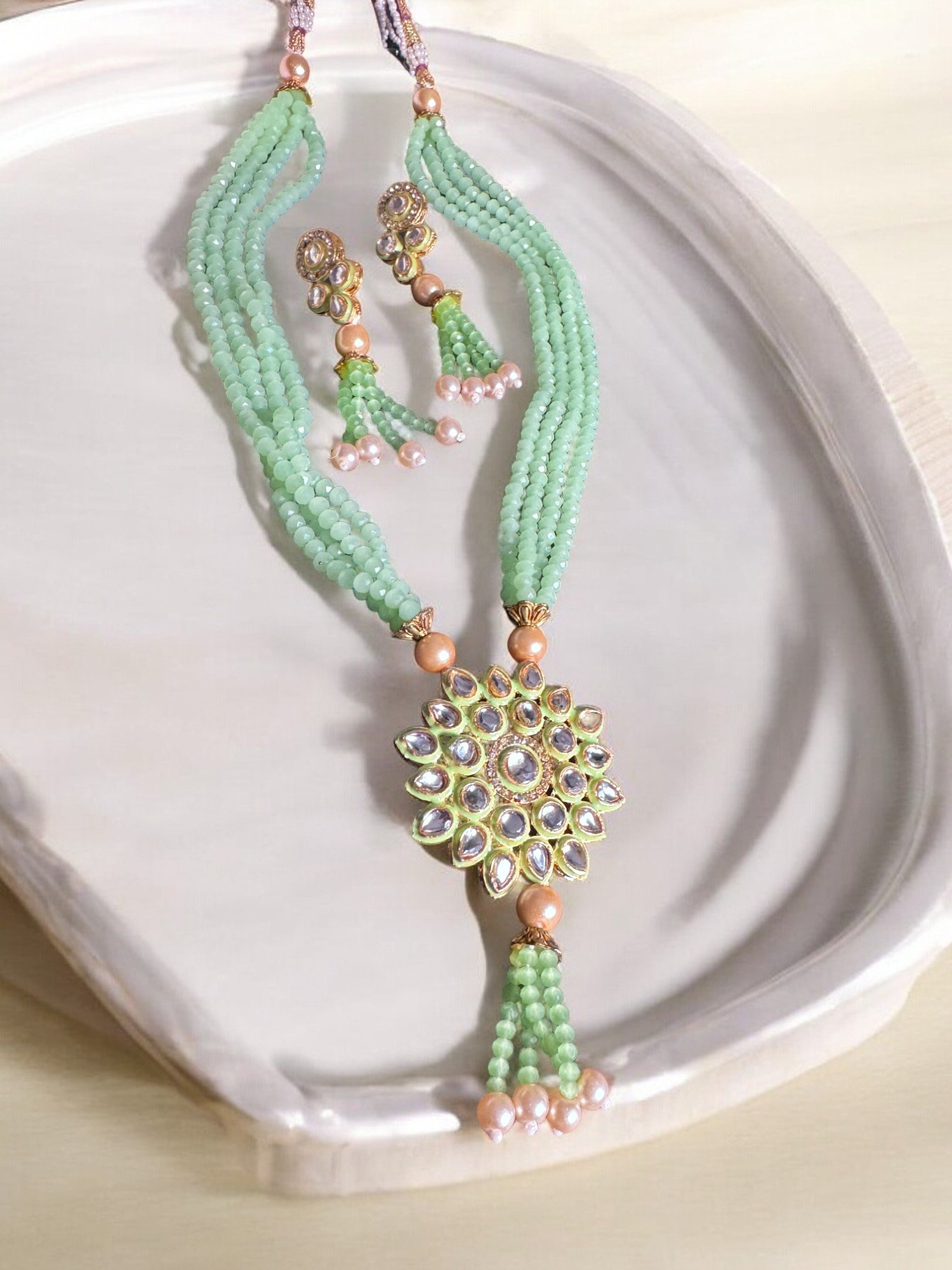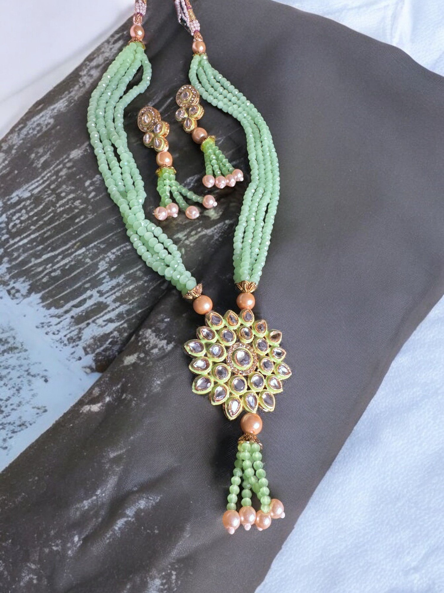 Exquisite long beaded necklace & earring Set in Jade Green