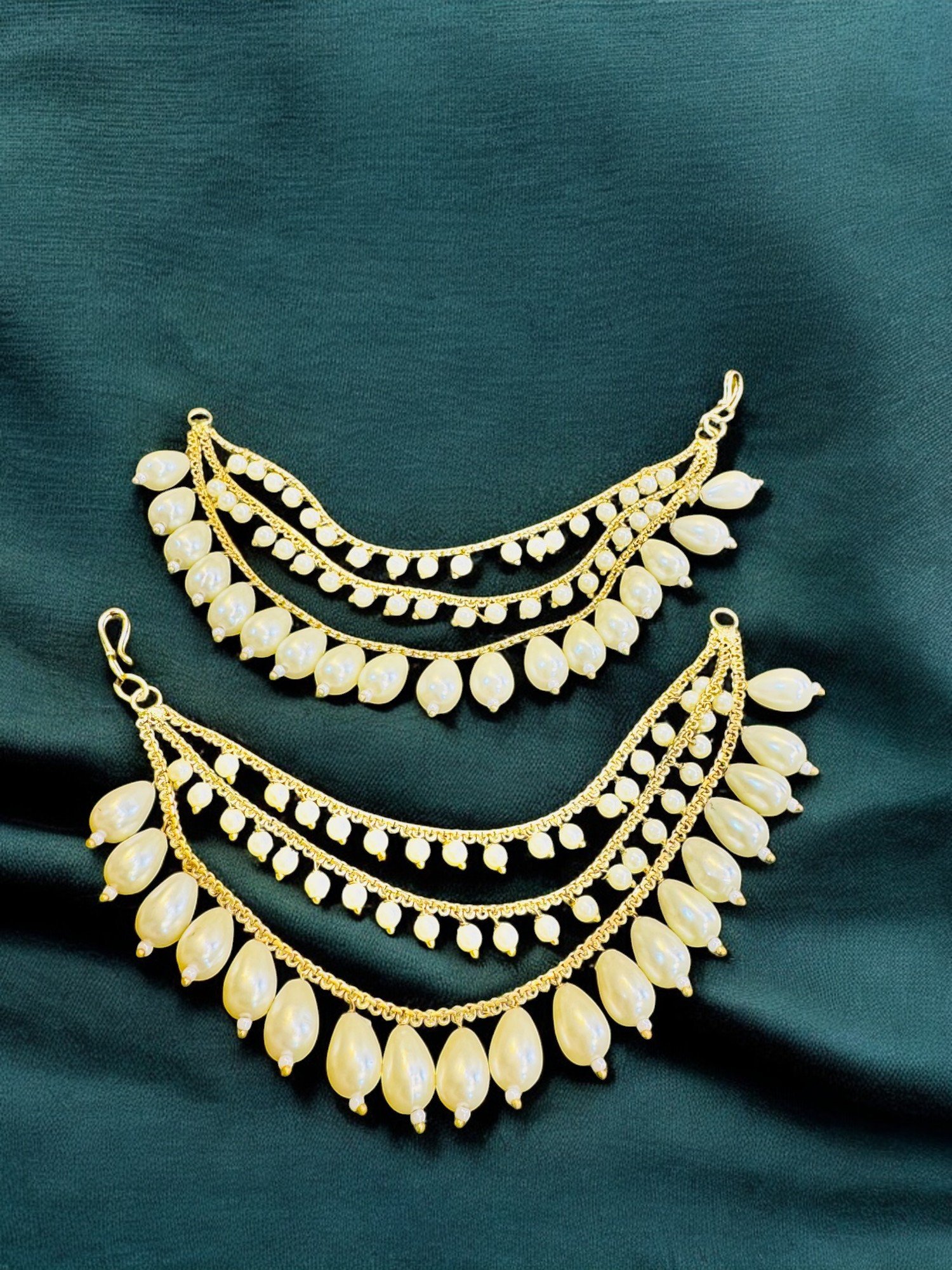 This exquisite pearl earring chain transforms your earrings into a dazzling statement piece. The delicate chain and elegant pearls add a touch of sophistication to any outfit.