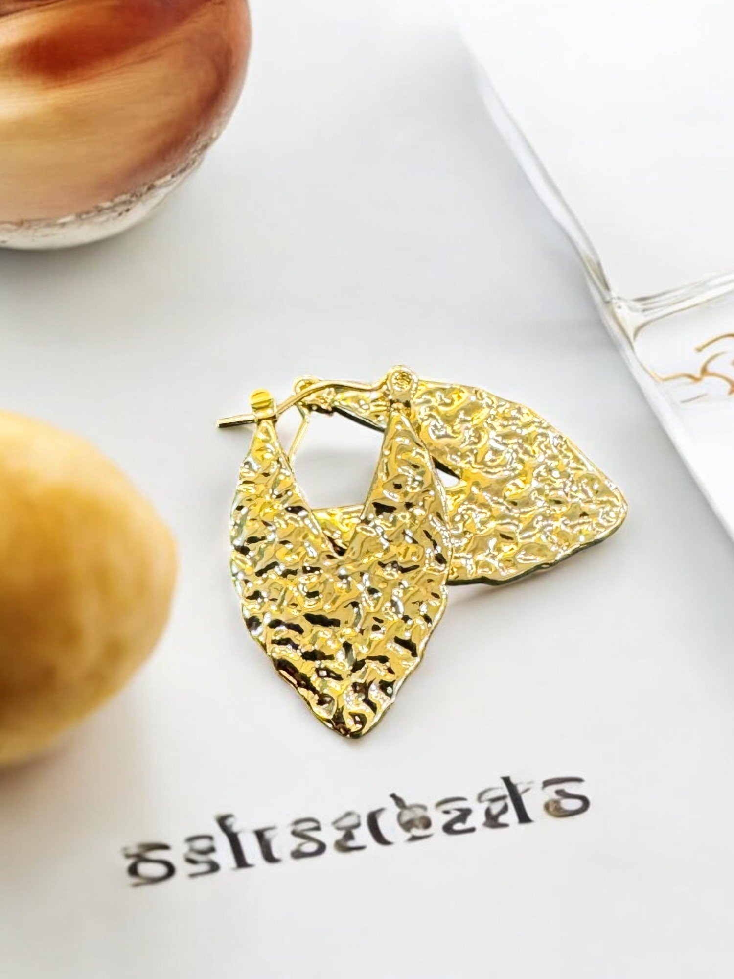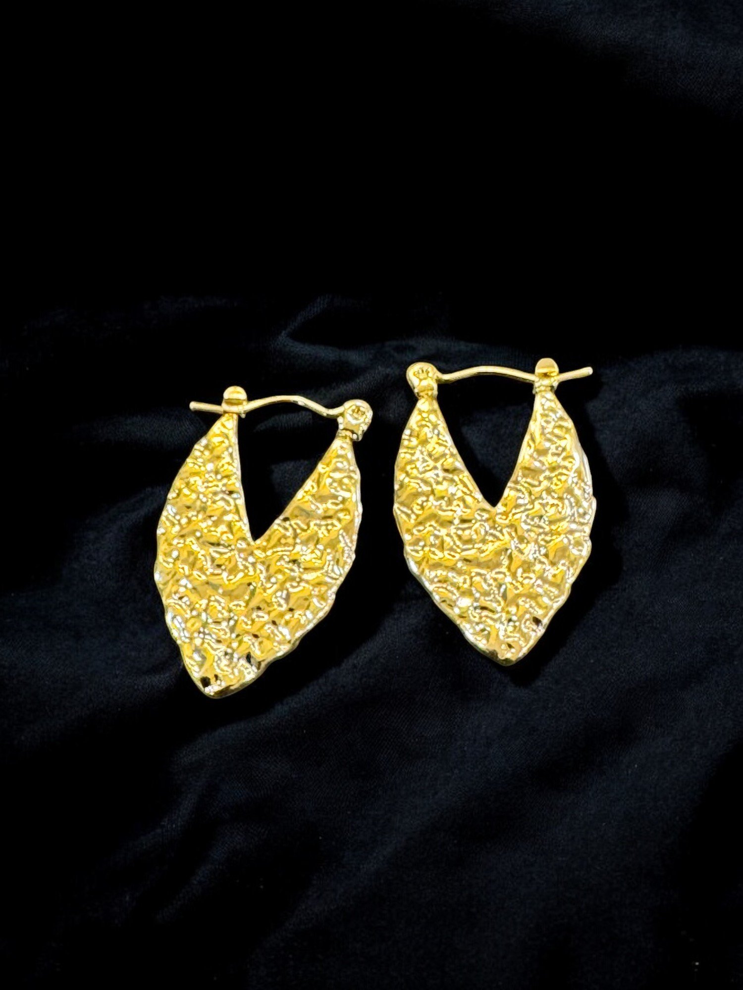 Unique V-Shaped Hoop Earrings: These stylish hoop earrings feature a unique V-shape and a textured design for a trendy and edgy look. Perfect for adding a touch of boho chic to any outfit