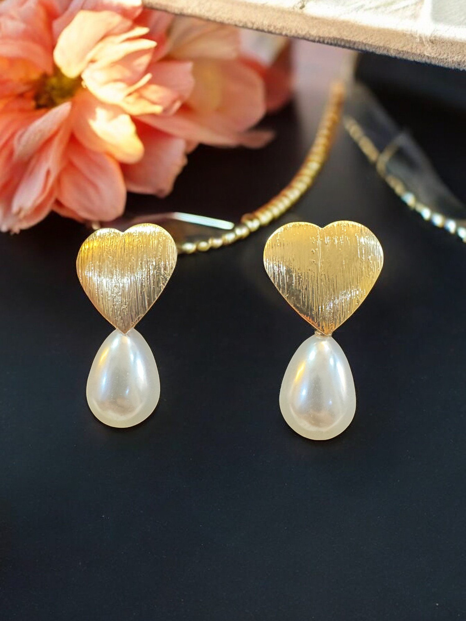 Romantic Heart Pearl Earrings – Crafted with a delicate heart design and adorned with lustrous pearls. These earrings are perfect for adding a touch of elegance to any outfit