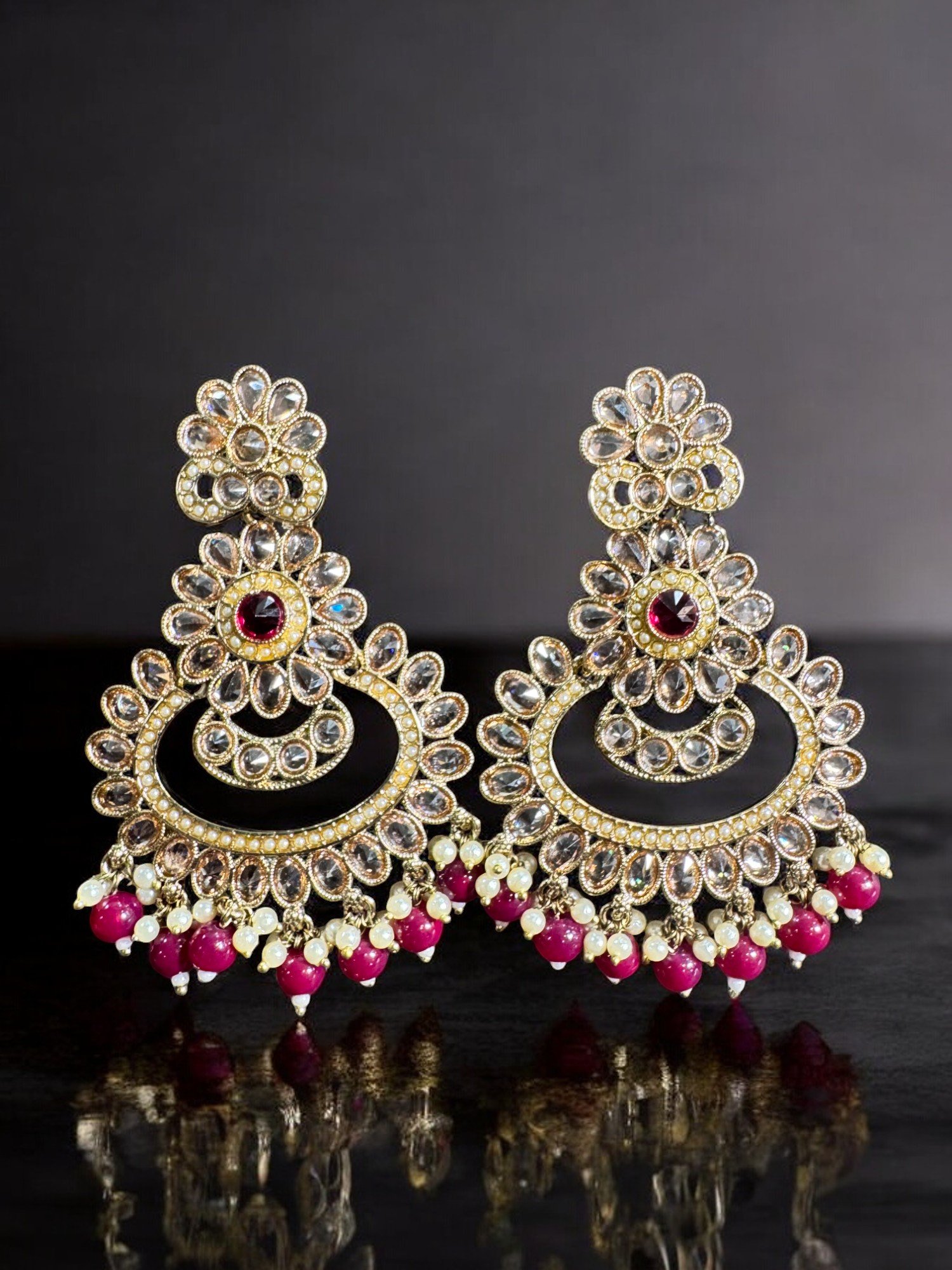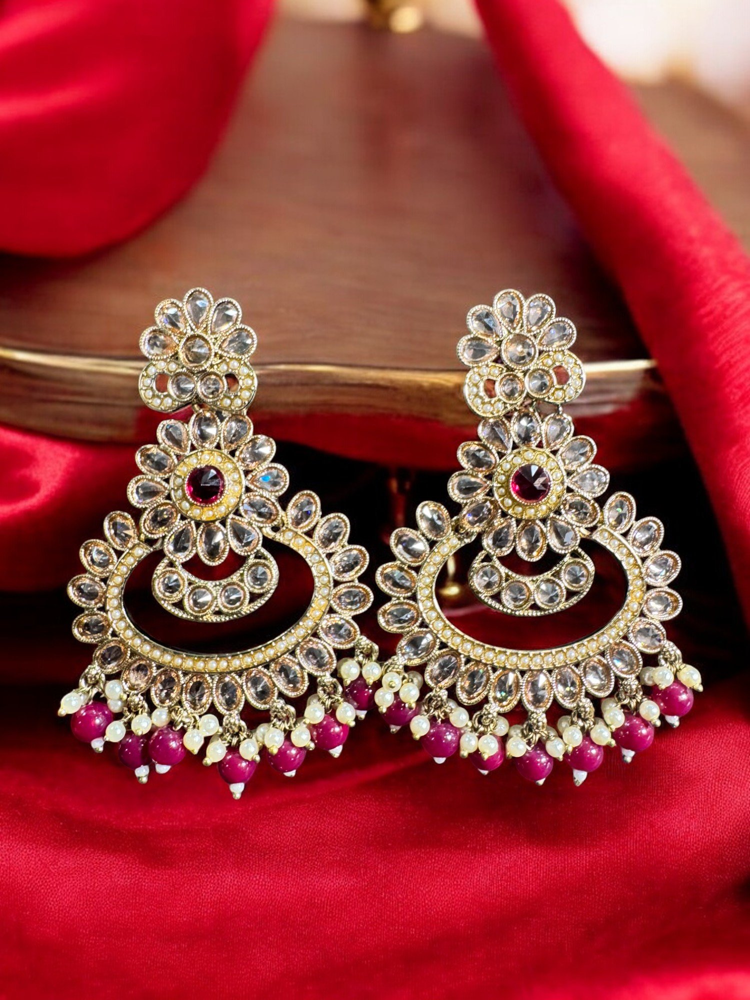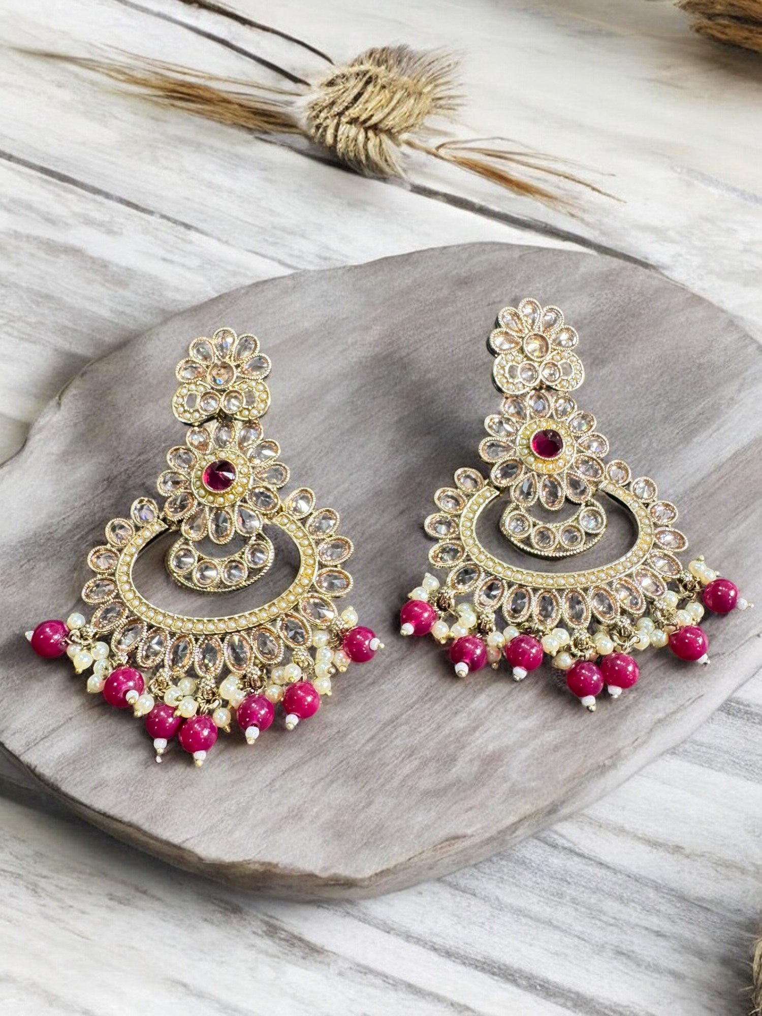 Embrace traditional Indian style with these beautiful in fashion earrings. The colorful design and delicate craftsmanship make them a standout piece. Perfect for adding a touch of glamour to any outfit. Experience the exquisite art of meenakari with these handcrafted earrings.