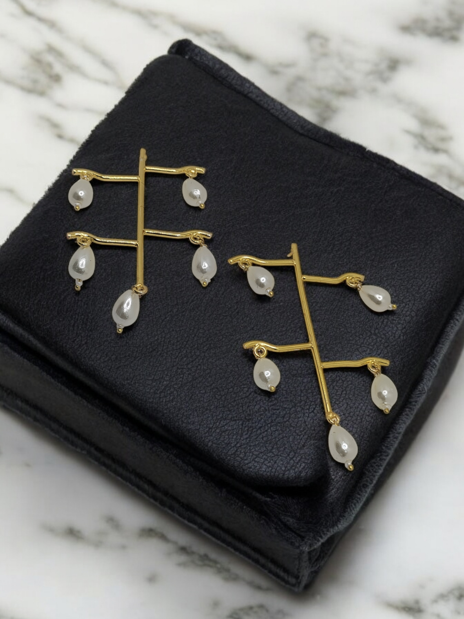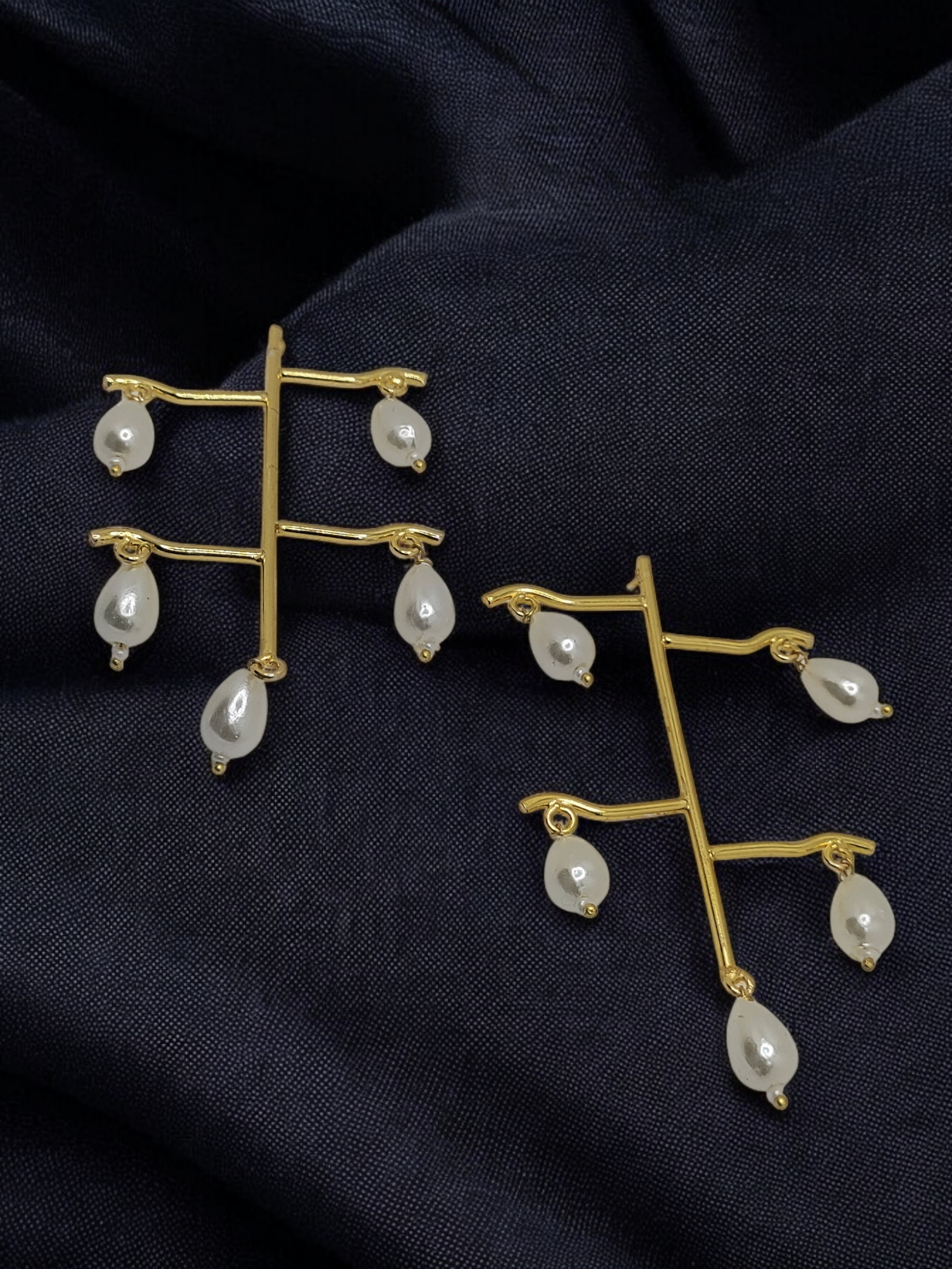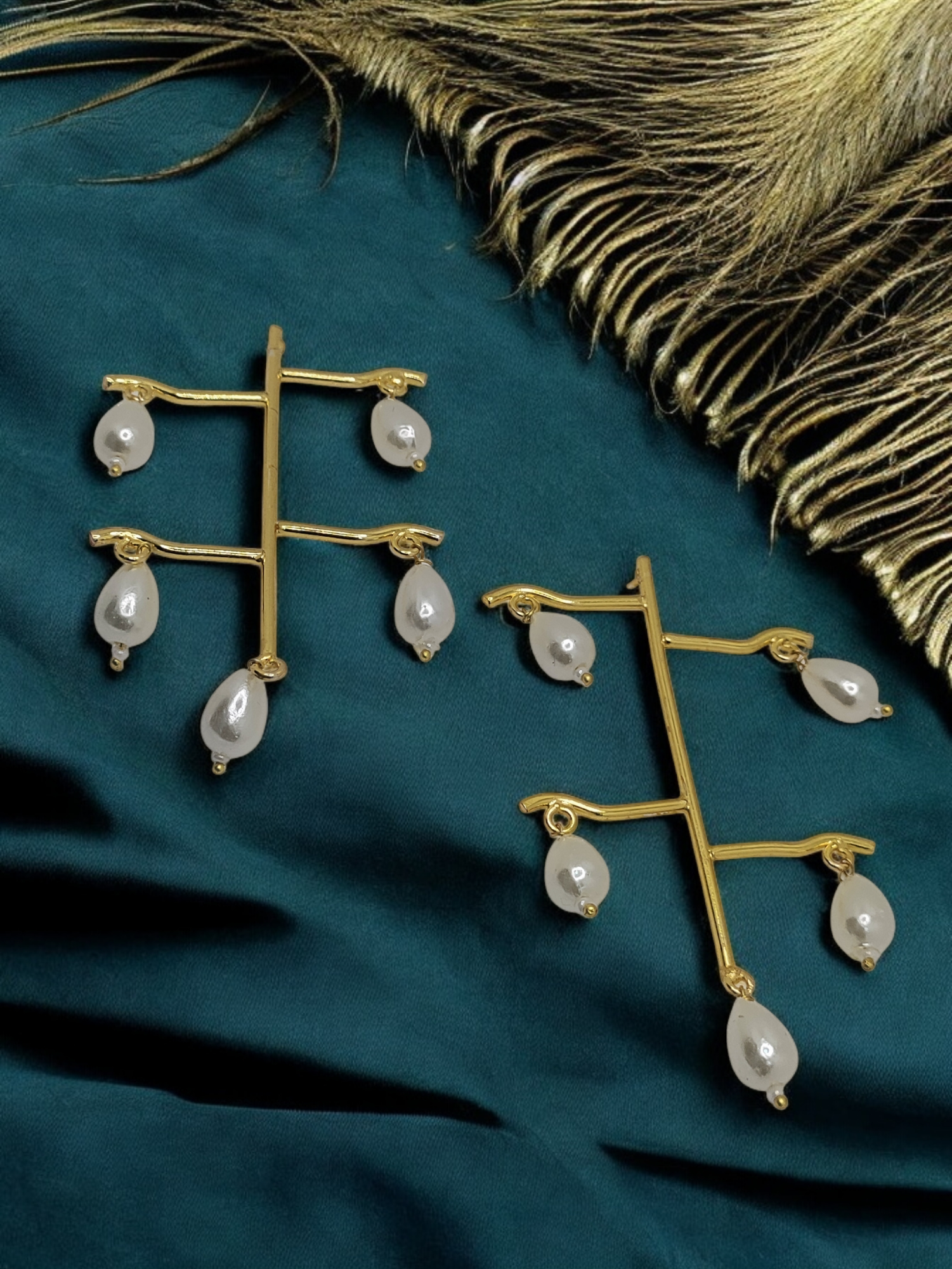 Keywords: earrings, pearl earrings, brass earrings, gold earrings, modern earrings, chic earrings, gift earrings, fashion