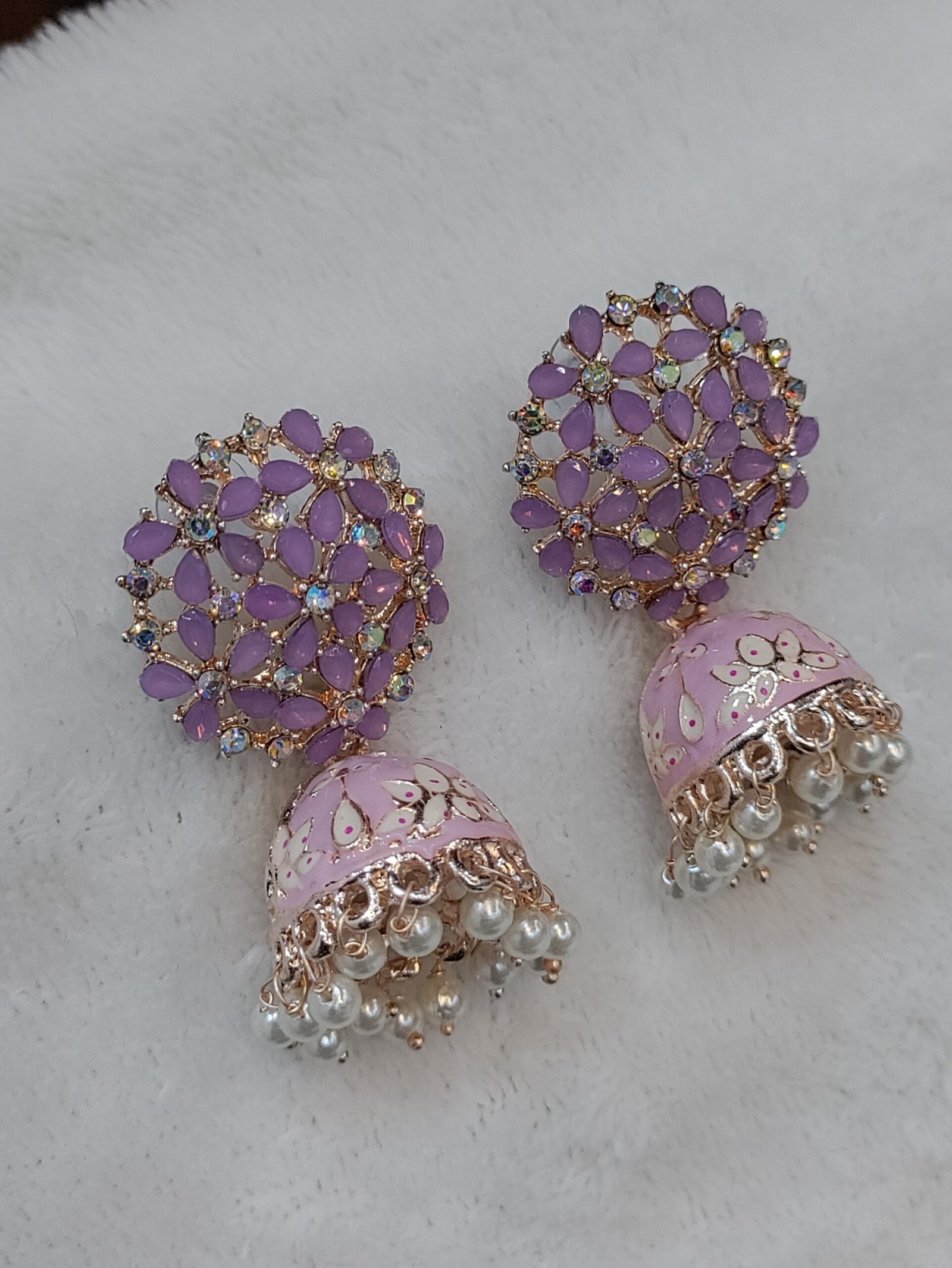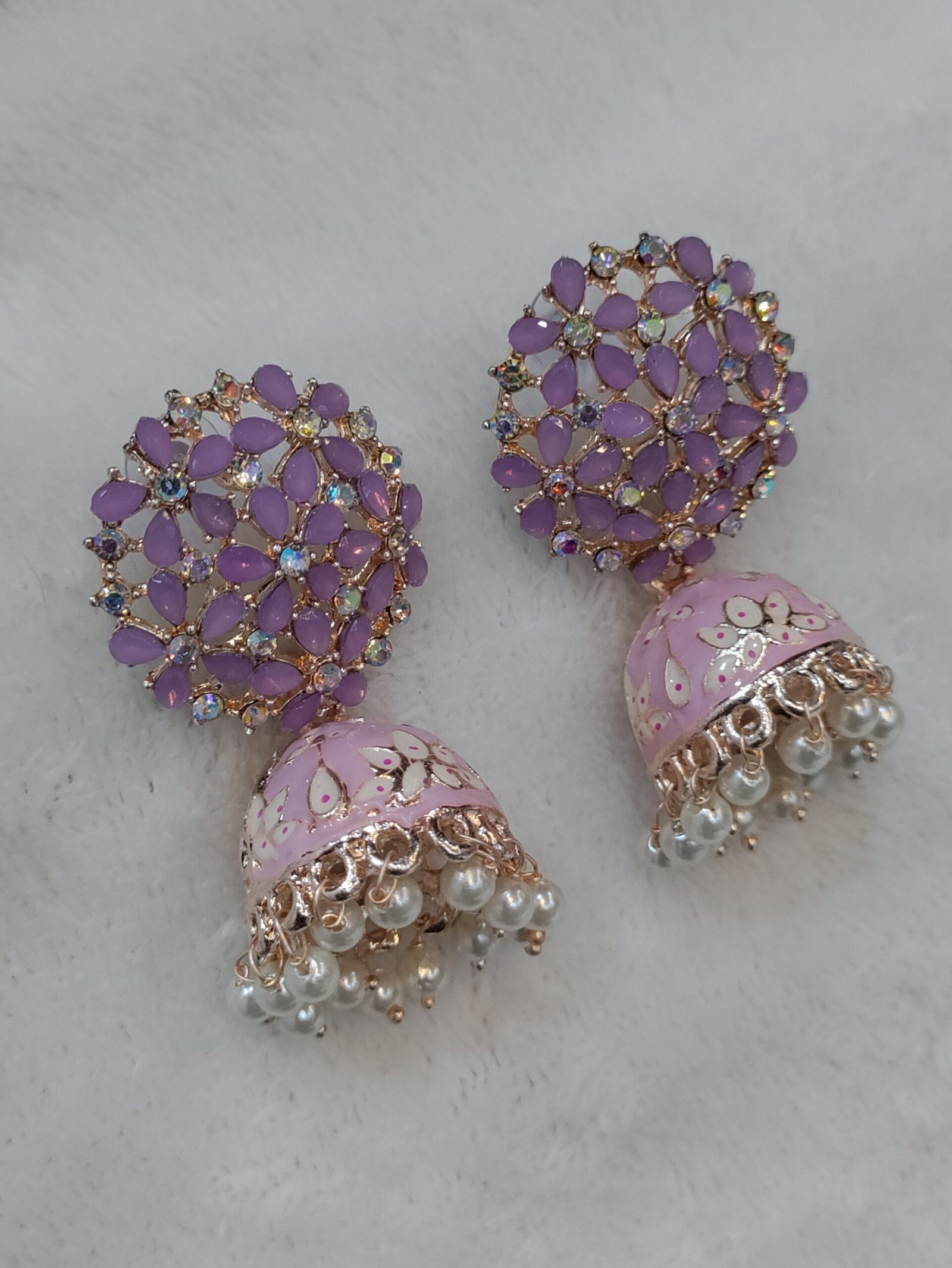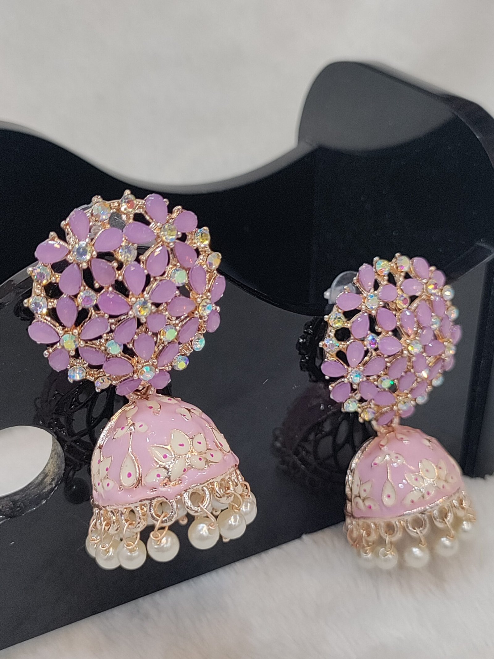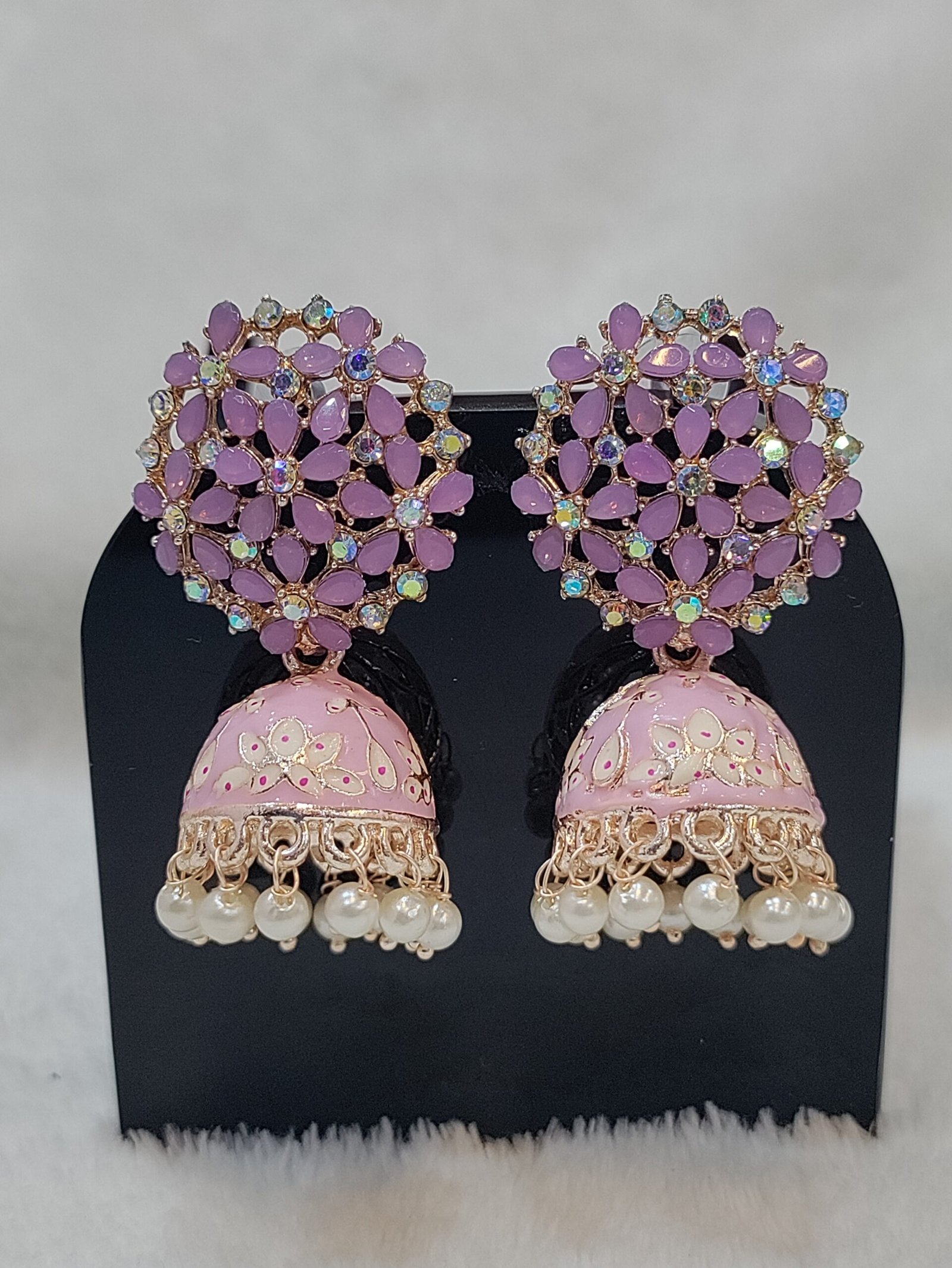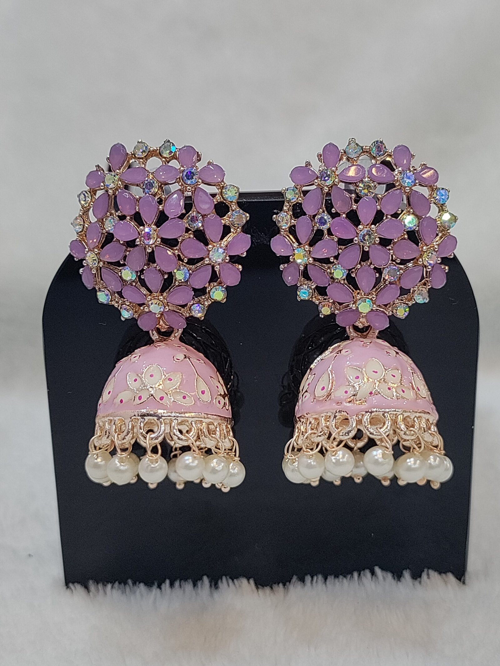 Traditional Gold Plated Mauve Jhumki Earring with Bogenvilla of Cystals