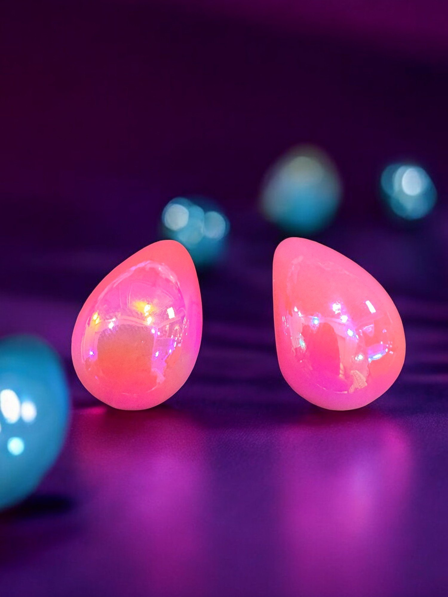Whimsical Teardrop Earrings – Crafted with iridescent glass in a teardrop shape, these earrings add a playful touch to any outfit
